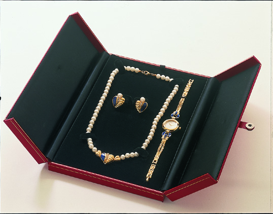 Armbandsuret består av en mjuk ledad, flätat kedja. För att förstärka samhörighet med pärlorna är urtavlan belagd med äkta pärlemor. Det schweiziska quartzurverket ger högsta precision och drivs med batteri.