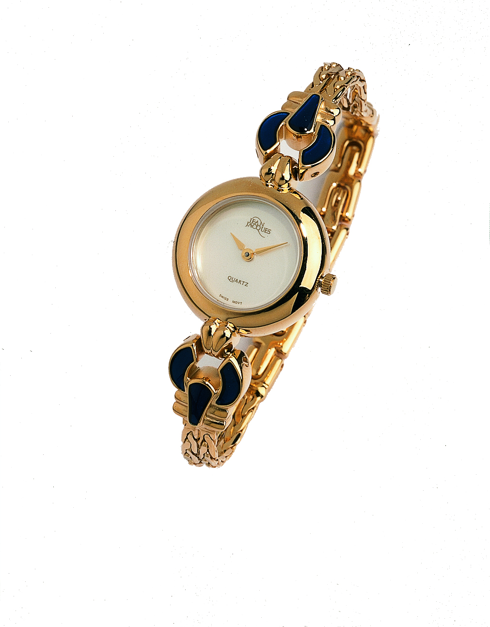 Jean Jacques har skapat en design i kombination av pärlor, kristall och emalj - ellt elegant avstämt mot de glänsande guldet.