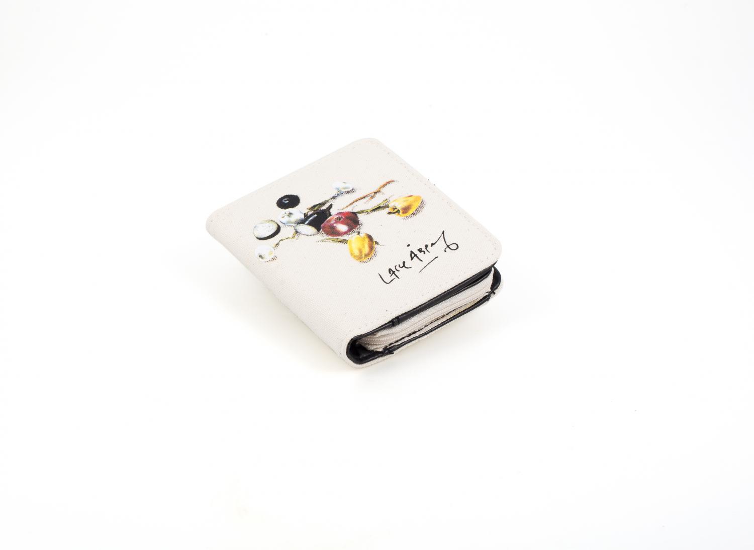 En miniväska och plånbok med Lasse Åbergs älskade motiv och hans signatur. Mjuk och praktisk! Rymmer det mesta – flera fack för kontokort, sedlar mm och 2-delad myntficka. Den är sydd i bomullscanvas med konstläderdetaljer. Runtgående dragkedja för säker förvaring. Storlek ca 11 x 12 x 3 cm.