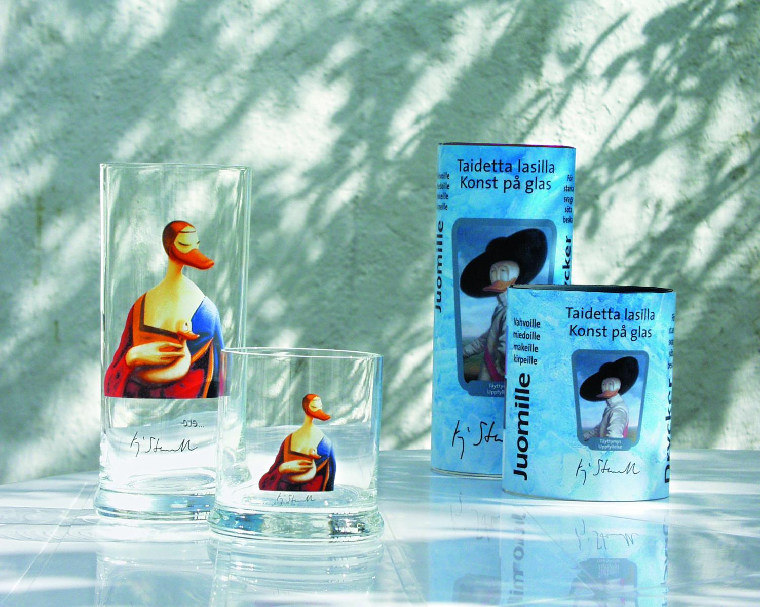 Kristallglas med Kaj Stenvalls underfundiga motiv med ankor.